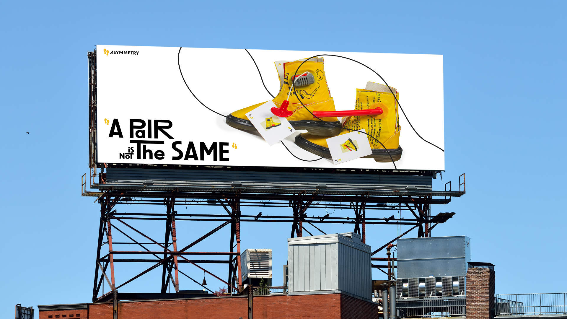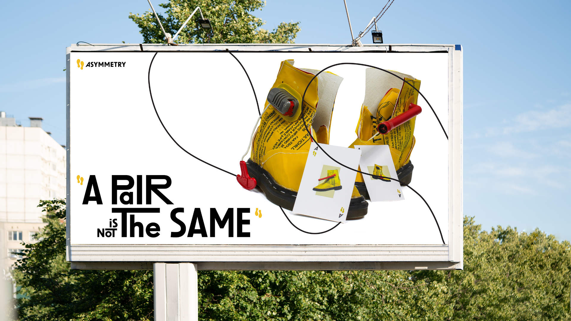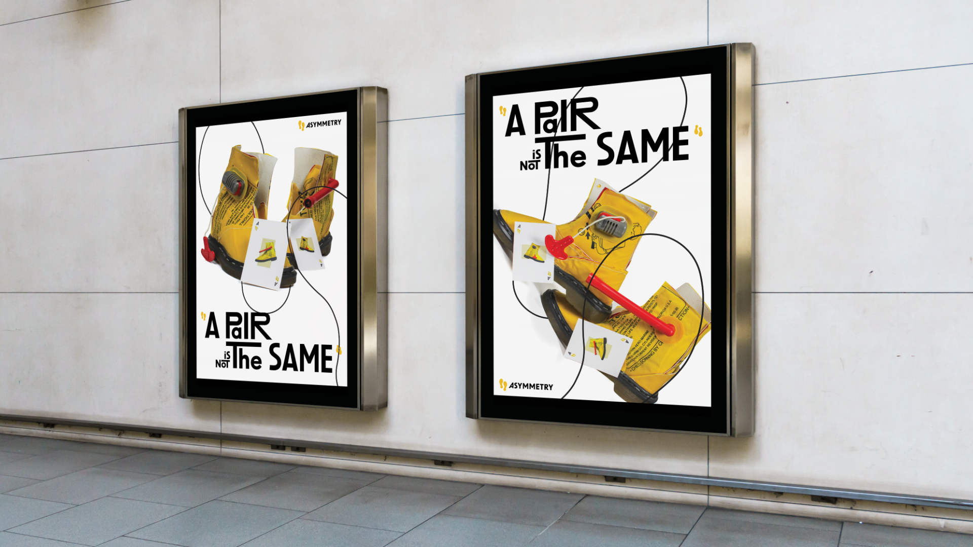 The campaign plays on the idea of playful randomness and asymmetrical design, using the comparison between “one pair of asymmetrical shoes” with “one pair in a poker hand”, to highlight the concept of “asymmetry”: similar but not identical.
