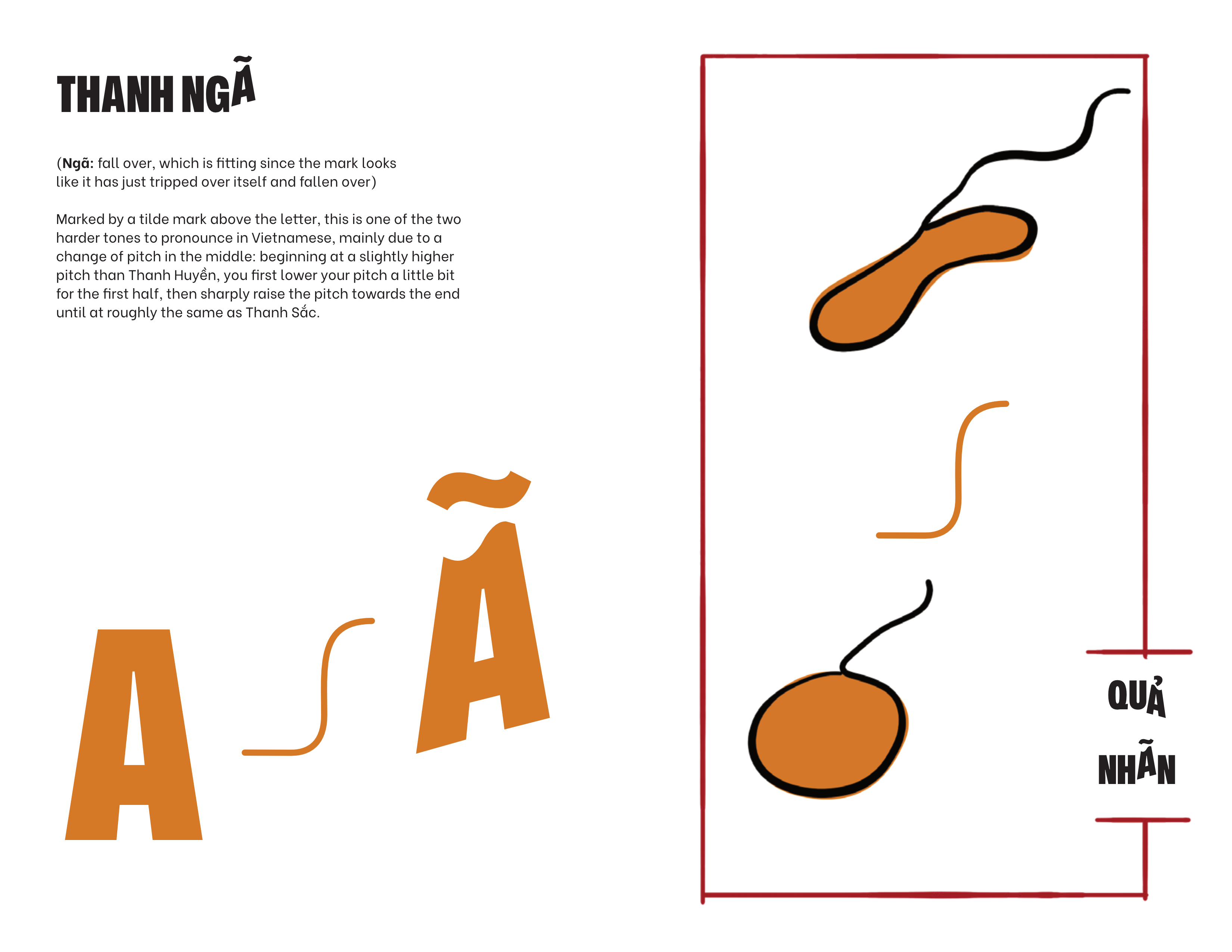 To tie these informations back to more practical use cases, I paired the sounds with names of fruits that contain these tones in Vietnamese, while also adding in a playful distortion inspired by the transformation caused by the tones.