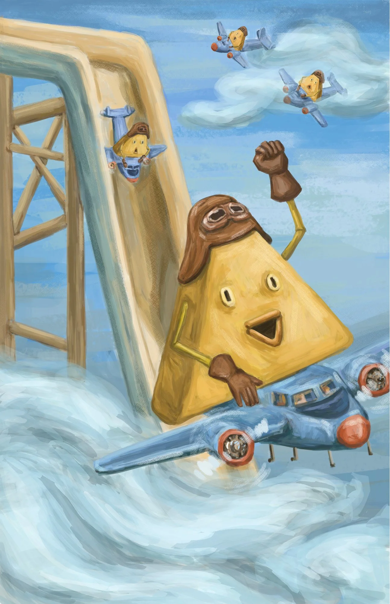 The design of the alien characters is inspired by their corresponding conspiracy/myth in a humorous and whimsical way: the giant eyes staging a fake moon landing, a fish “fishing” for the Titanic, the plant monster roasting the Earth.
